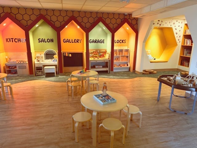 Within our interactive play area, they can enjoy a variety of hands-on experiences—including a giant pegboard for building and problem-solving, a fun slide for active play, and themed playhouses offering unique activities. For our young artists, the arts and crafts tables are fully stocked with materials that inspire imagination and creative exploration.