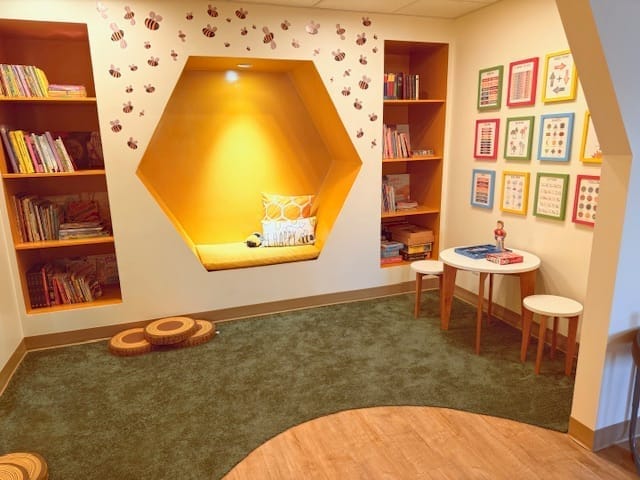 We also offer a cozy, well-stocked library featuring an abundance of books for all reading levels. Children can curl up with a favourite story, explore new topics, or simply enjoy a quiet moment in a calming environment that nurtures literacy and a love of reading.